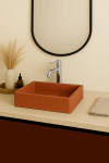 Cuba de Banheiro de Concreto Artesanal Apoio Retangular ZH011 Ocre - Zhen Home