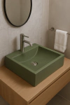 Cuba de Banheiro de Concreto Artesanal Apoio Quadrada ZH034 Verde Oliva - Zhen Home