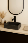 Cuba de Banheiro de Concreto Artesanal Apoio Retangular ZH011 Preto - Zhen Home