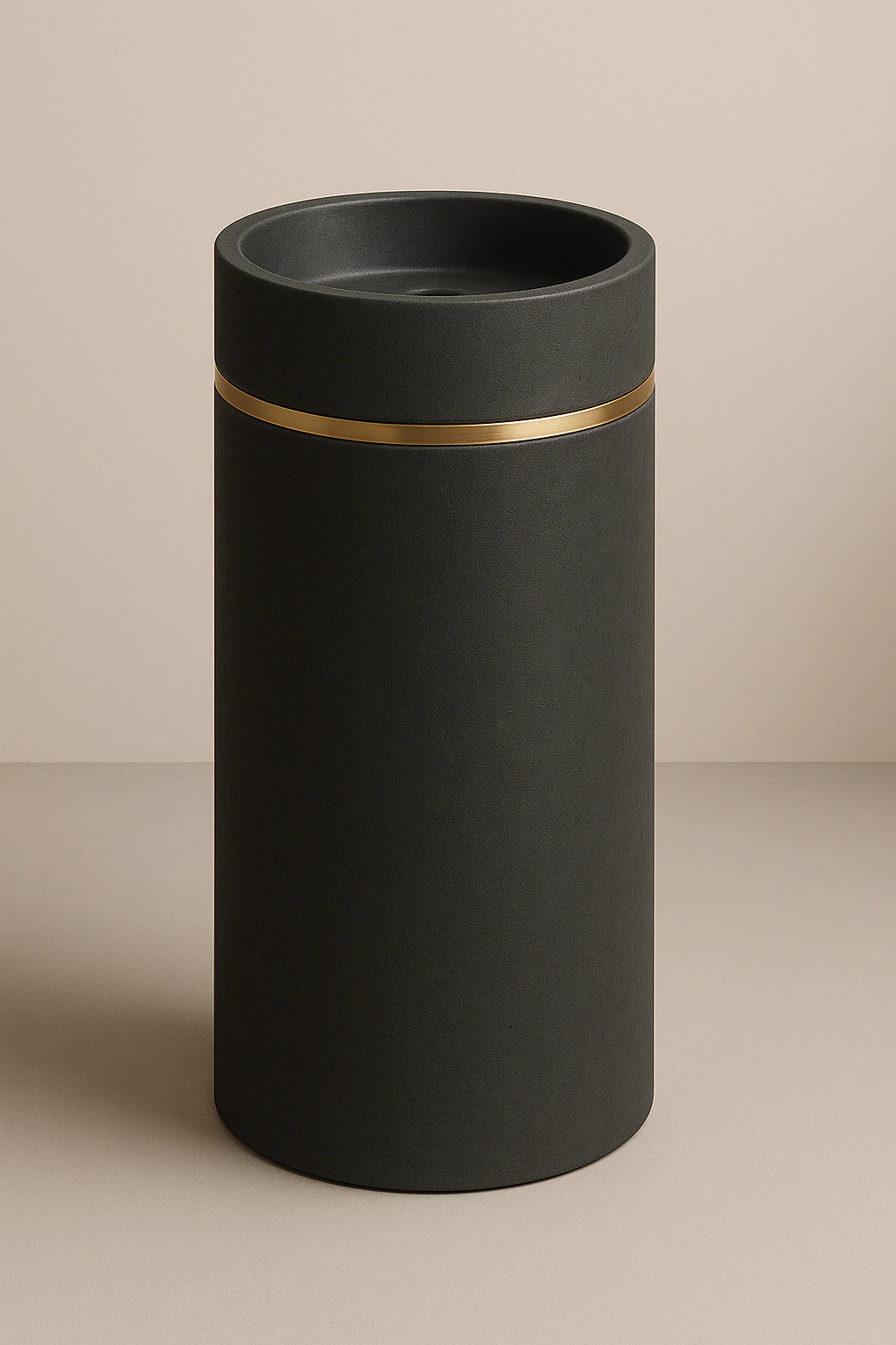 A Cuba de piso em concreto artesanal ZH1001 traz design contemporâneo e funcionalidade para banheiros e lavabos.
