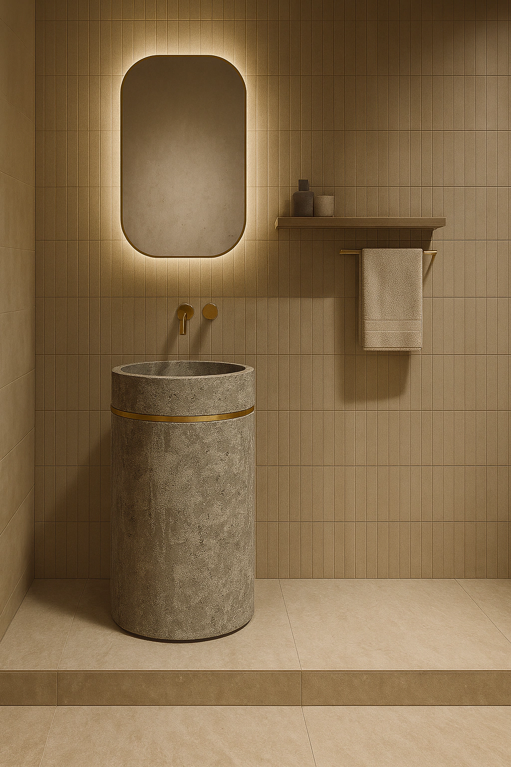 A Cuba de piso em concreto artesanal ZH1001BR traz design contemporâneo e funcionalidade para banheiros e lavabos.